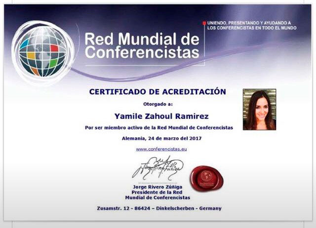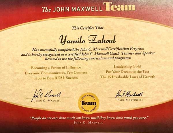 Yamile Zahoul te compartirá técnicas y métodos para lograrlo, ha ayudado a miles de personas en varios países a través de sus conferencias, cursos y seminarios. Autora del best seller «Los caminos del éxito» (10 pasos de un despertar de consciencia ) Graduada de Mastery University por Anthony Robbins, certificada como coach y conferencista por The John Maxwell Team.